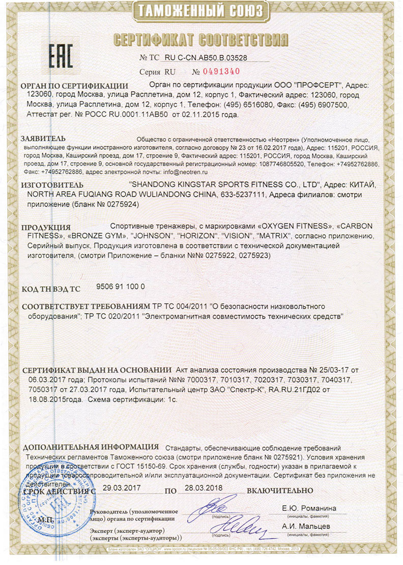 - Подробности гарантии:Рама - 7 лет; электронные и механические компоненты, узлы движения - 3 года; детали износа и пластиковые части - 1 год; крепежные элементы - 0,5 года.
